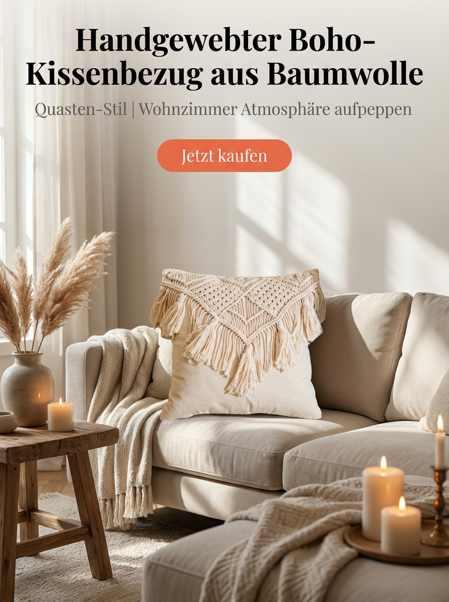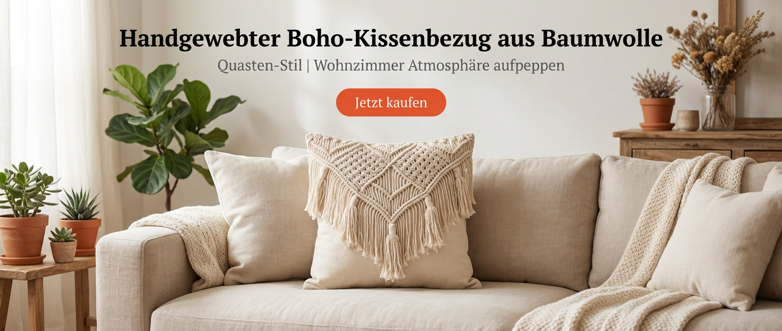 Sofakissenbezug, Kissenbezug, Baumwollfaden, Baumwollseil, handgewebt, Quasten-Stil, Bohemian-Stil